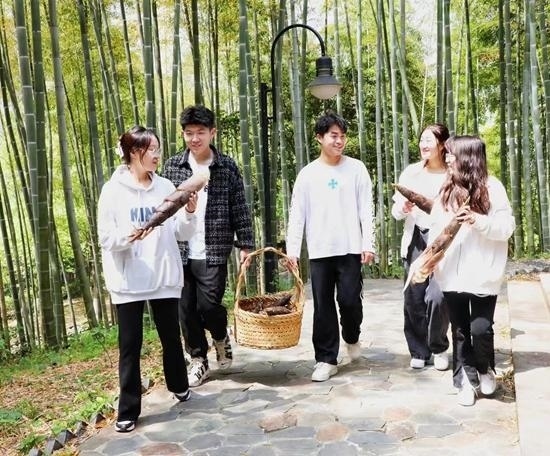 進(jìn)行40分鐘的“漫談式”課程后,師生們一起拿起鋤頭,開始挖筍實(shí)踐。在勞動(dòng)中,他們感受著春天的饋贈(zèng)。該校視覺傳達(dá)與設(shè)計(jì)專業(yè)的南通姑娘周雨濛從未嘗試過(guò)挖筍。對(duì)于校園中的竹子是何人養(yǎng)護(hù)、怎么養(yǎng)護(hù),她了解得不多。課堂上,她第一次拿起鋤頭,在學(xué)校校工的帶領(lǐng)下挖筍。