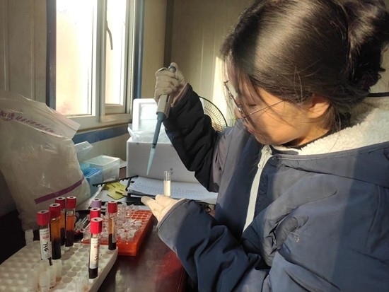 2月16日,2022級碩士研究生王慧莉把在科技小院所采的牛血液樣品做離心處理。圖片由受訪者提供