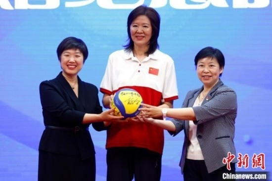 圖為郎平為陳經(jīng)綸中學(xué)首屆“郎平杯”排球聯(lián)賽開球。中新社記者 富田 攝
