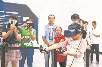 9月17日,在全國科普日北京主場(chǎng)活動(dòng)展區(qū),小朋友使用虛擬現(xiàn)實(shí)設(shè)備感受天和核心艙內(nèi)的生活。新華社記者 鞠煥宗攝