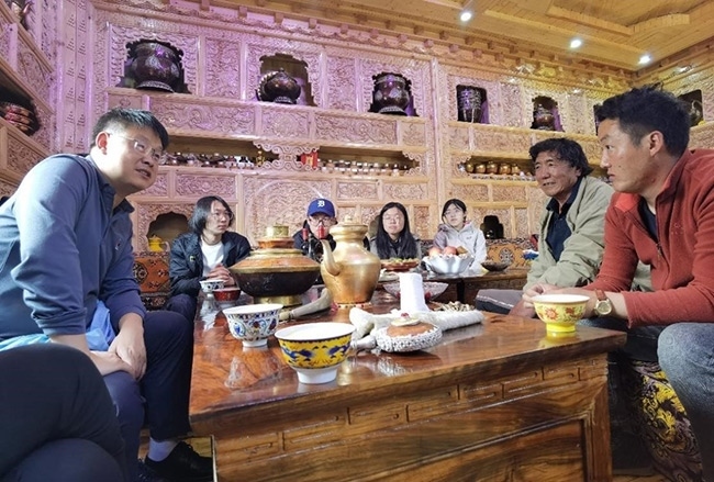 甘孜思政實踐團走進藏民家中訪談?wù){(diào)研。