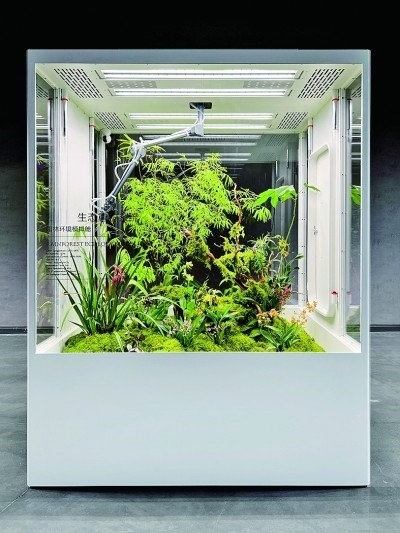 展廳一側(cè),三個立方體環(huán)境模擬艙并排放置,分別在近7立方米的空間內(nèi)模擬了雨林、海島、沙漠三種生態(tài)環(huán)境,引來許多觀眾圍觀?!霸诟邩橇至⒌亩际?,很多人都向往擁有一方屬于自己的自然天地。為人們在室內(nèi)打造一片‘原始森林’便成了我們的使命。”品牌創(chuàng)始人李軍介紹,設(shè)計過程中,團(tuán)隊遇到的一大的難點(diǎn)就是在保證室內(nèi)環(huán)境舒適度的同時,讓各類植物健康生長。“通過設(shè)計師的努力,我們首次將人造太陽光源、溫濕度控制、空氣流通、智能微噴等系統(tǒng)整合于室內(nèi)種植模擬環(huán)境中,實現(xiàn)了室內(nèi)種植智能化、自動化、現(xiàn)代化?!崩钴姳硎?,做設(shè)計亦要遵循自然法則,“人與自然和諧共生”是團(tuán)隊始終不變的設(shè)計宗旨。