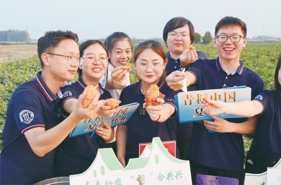圖為2023年暑期,中國人民大學博士生服務團在山東菏澤圍繞“人才產(chǎn)業(yè)融合發(fā)展賦能鄉(xiāng)村振興路徑探索”課題進行調研,并開展“青耘中國·夏耘夢想”公益助農(nóng)直播活動。 中國人民大學供圖