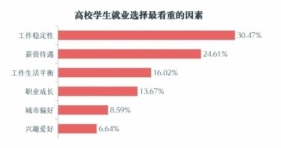 對我國東、中、西部地區(qū)7個省區(qū)市的14所本科院校、4所專科院校,覆蓋研究生、本科生、專科生三類群體,隨機(jī)抽樣的1829份調(diào)查問卷顯示,除工作穩(wěn)定性、薪資待遇外,工作生活平衡、職業(yè)成長、所在城市、興趣愛好等,也是高校學(xué)生就業(yè)選擇時看重的因素。