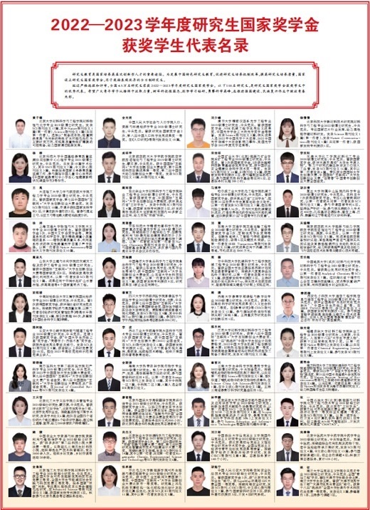 經(jīng)過嚴格選拔和評審,全國4.5萬名研究生榮獲2022—2023學年度研究生國家獎學金。以下100名研究生,是研究生國家獎學金獲獎學生中的優(yōu)秀代表。希望廣大青年學子從榜樣中汲取力量,樹牢科技報國志,刻苦學習鉆研,勇攀科學高峰,在推進強國建設、民族復興偉業(yè)中綻放青春光彩。