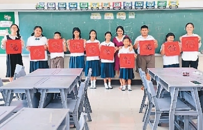 有的學(xué)生希望把寫(xiě)好的“福”字帶回家——“看到大家寫(xiě)的‘?!侄疾灰粯樱己闷?,書(shū)法真是太酷了!我要把這張‘?!仲N在家里!”
