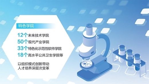 高東鋒:新時(shí)代以來(lái),高等教育戰(zhàn)線積極服務(wù)國(guó)家戰(zhàn)略需要,體系化推進(jìn)新工科、新醫(yī)科、新農(nóng)科、新文科建設(shè),在教育教學(xué)的組織模式、培養(yǎng)機(jī)制、內(nèi)容方法、理論實(shí)踐等方面持續(xù)深化改革。聚焦戰(zhàn)略性新興領(lǐng)域和急需領(lǐng)域,布局建設(shè)了12個(gè)未來(lái)技術(shù)學(xué)院、50個(gè)現(xiàn)代產(chǎn)業(yè)學(xué)院、33個(gè)特色化示范性軟件學(xué)院、18個(gè)高水平公共衛(wèi)生學(xué)院等特色學(xué)院,分批布局45個(gè)國(guó)家產(chǎn)教融合創(chuàng)新平臺(tái),有針對(duì)性、有組織地開(kāi)展人才培養(yǎng),取得積極進(jìn)展,牽引帶動(dòng)高等教育的全方位、全過(guò)程、全要素改革。