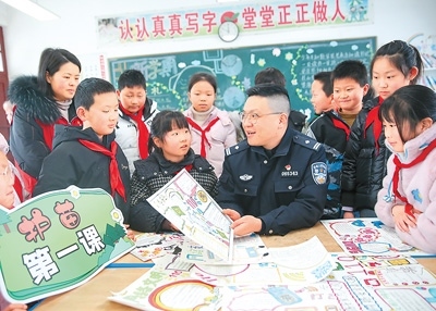 2月18日,在江蘇省如皋市下原鎮(zhèn)花園小學(xué),派出所民警通過知識普及、主題手抄報(bào)等形式,引導(dǎo)小學(xué)生科學(xué)、文明、安全上網(wǎng)。