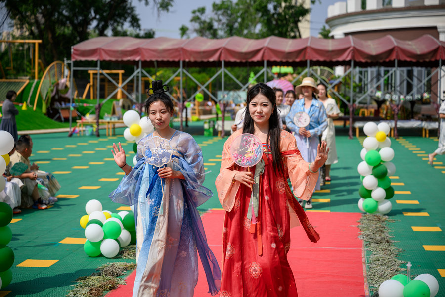 活動(dòng)現(xiàn)場(chǎng),家長(zhǎng)與幼兒共同感受六一兒童節(jié)的歡樂(lè)氛圍與端午節(jié)的民俗魅力。