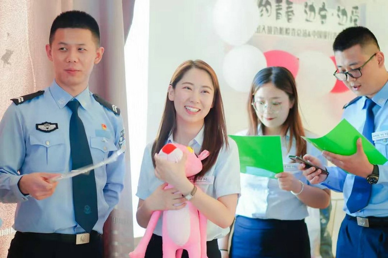 活動現(xiàn)場,布置溫馨浪漫,單身男民警與優(yōu)秀女青年歡聚一堂,在“電影配音”、“趣味問答”、“手繪團(tuán)扇”、“心動時(shí)刻”等廣大青年喜聞樂見的游戲環(huán)節(jié)中展現(xiàn)才藝,歡快互動、輕松交流,現(xiàn)場處處洋溢著幸福的喜悅。
