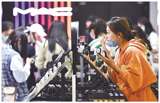 1月3日,顧客在海口日月廣場免稅店選購化妝品。新華社記者 郭程 攝