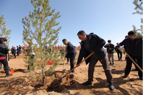 北疆新聞網(wǎng)、北疆新聞APP、北疆云消息(張博)黃河中上游沿岸,谷雨時節(jié),在庫布其沙漠和騰格里沙漠腹地,植樹擴綠正隨著光伏治沙降碳而延伸,描繪著藍(lán)綠交織、水沙和諧、鄉(xiāng)村振興的工筆畫。4月22日是第53個世界地球日,也是第18屆庫布其植樹節(jié),蒙西基地庫布其200萬千瓦光伏治沙項目現(xiàn)場、甘肅武威50萬千瓦光伏治沙項目現(xiàn)場同步舉行大型植樹紀(jì)念活動,主題為“光伏治沙護河,庫布其降碳擴綠與鄉(xiāng)村振興”,正式啟動庫布其“十四五”1億棵碳匯林工程第二期種植。億利集團董事長王文彪表示:“‘十四五’期間,我們將在黃河流域的庫布其沙漠、烏蘭布和沙漠、騰格里沙漠的億利治沙區(qū)域建設(shè)上百公里治沙護河碳匯林帶,2021年已如期完成2000萬棵種植任務(wù),2022年將繼續(xù)通過‘政策+產(chǎn)業(yè)+公益’的模式,實施光伏板下種植和沙漠生態(tài)種植,確保完成2000萬棵種植任務(wù)。億利庫布其治沙科技和經(jīng)驗?zāi)J揭沧呱狭宋鞑啬乔吆吆0蔚貐^(qū),成功種活了近40萬株鄉(xiāng)土樹種,我們將加快推動那曲城鎮(zhèn)植樹關(guān)鍵技術(shù)研發(fā)與綠化模式示范項目成果的規(guī)?;茝V?!被顒蝇F(xiàn)場全面啟動了國家在庫布其沙漠規(guī)劃的退化林修復(fù)工程、蒙西基地2GW光伏治沙和甘肅武威500兆瓦光伏治沙項目板下生態(tài)種植工程、杭錦旗林草局和團委保護母親河工程、螞蟻森林、大鉦資本庫布其沙漠雙碳公益林、鄂爾多斯中小企業(yè)庫布其公益林、杭錦旗工商聯(lián)林、杭錦旗稅務(wù)碳匯林等多個生態(tài)植樹項目。
