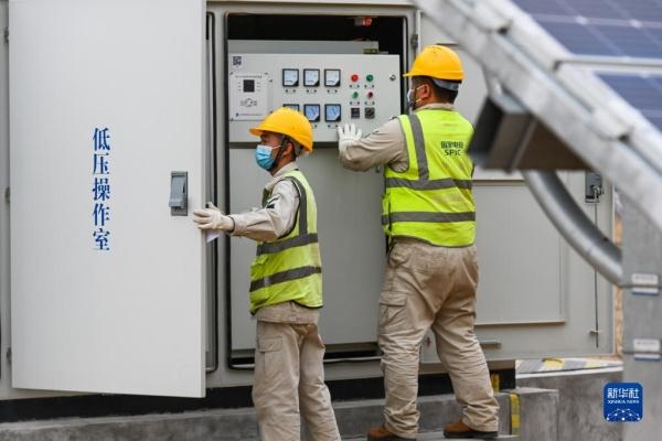 4月20日,工作人員在達(dá)拉特光伏發(fā)電應(yīng)用領(lǐng)跑基地巡檢。新華社記者 劉磊 攝