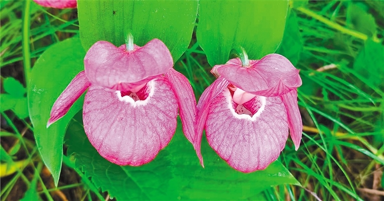 這3種杓蘭屬于內(nèi)蒙古大興安嶺珍稀的植物資源,零星分布在林下、林緣、林間草地上,或三五株,或十余株,每種杓蘭都各具特色。大花杓蘭呈紫紅色,花大,深囊狀的唇瓣如雞蛋般大?。蛔宵c杓蘭花為白色,上面有淡紫色斑點;黃囊杓蘭花色為淺黃色,唇瓣為深囊狀近橄欖型。由于杓蘭花朵形狀特別,非常惹人喜愛,許多人慕名來打卡拍照。