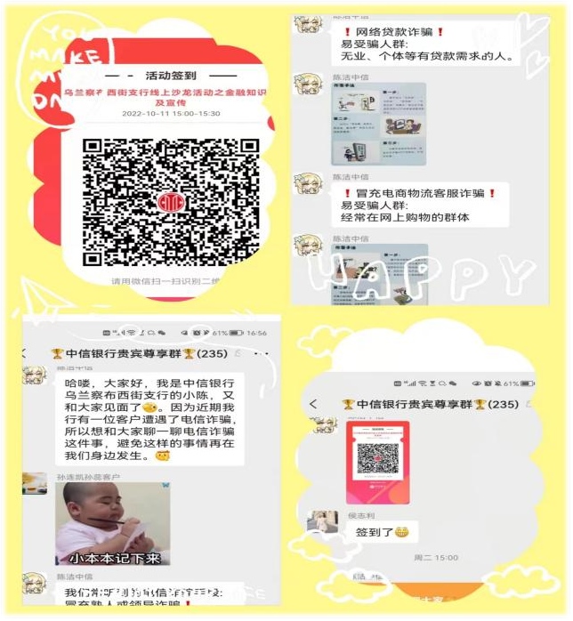 該行各網(wǎng)點組織開展“防范電信詐騙——中信銀行守護您的金融安全”主題線上沙龍活動,300余人積極參與,進一步提高公眾金融素養(yǎng)。同時,該行充分利用線上宣傳渠道,通過專業(yè)人員講解、互動提問答題、電子宣傳手冊等方式,向社會公眾宣傳電信詐騙知識。并對學生、老年人等易受騙群體進行針對性反詐警示教育,揭露電信詐騙犯罪手法和危害,以及教授如何識別、如何應對、防止上當受騙等方法。