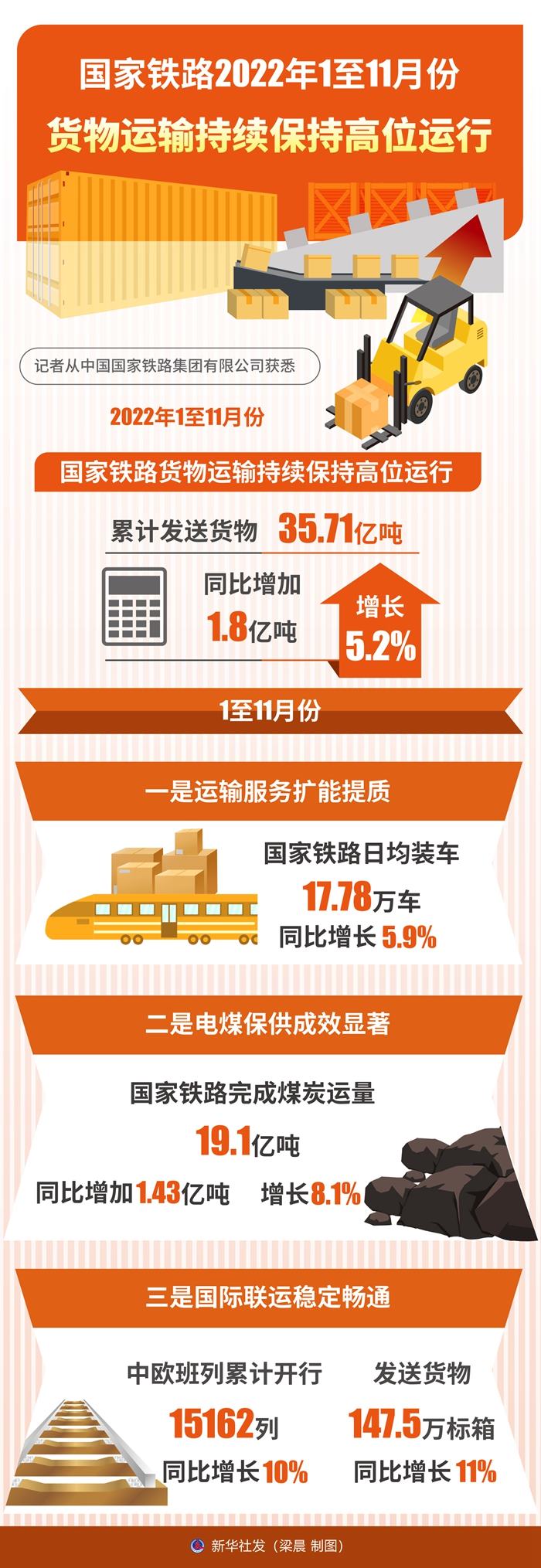 國鐵集團貨運部負責人介紹,今年以來,國鐵集團堅決貫徹落實黨中央、國務院關于穩(wěn)住經濟大盤、做好物流保通保暢工作的部署要求,高效統籌疫情防控和鐵路運輸,全力保障國計民生重點物資運輸,為暢通國內國際雙循環(huán)、保障國民經濟平穩(wěn)運行提供有力支撐。