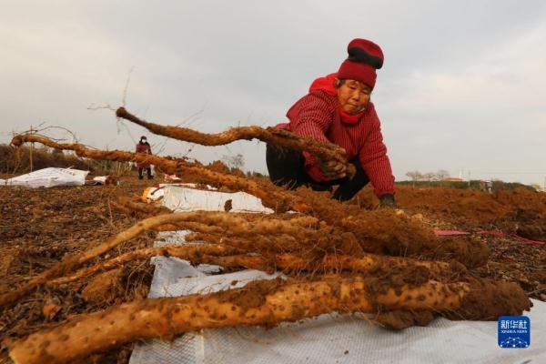 時下,河南省焦作市溫縣種植的鐵棍山藥進(jìn)入收獲季,當(dāng)?shù)剞r(nóng)民忙著采收、加工、銷售。