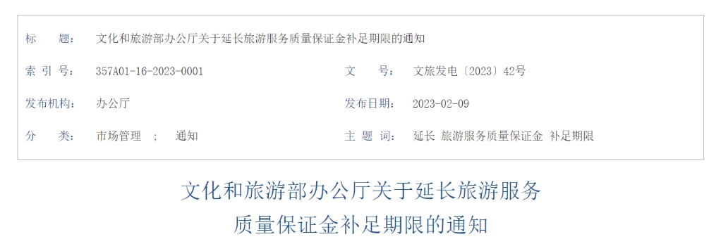 根據(jù)通知,2023年4月1日(含當(dāng)日)以后取得旅行社業(yè)務(wù)經(jīng)營許可證的旅行社,可申請暫緩交納保證金,補足保證金期限為2024年3月31日。