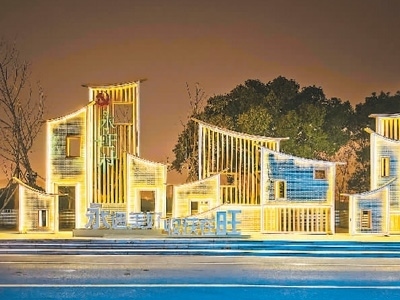 2022年12月28日,獲批全省“未來鄉(xiāng)村”稱號的浙江省寧波市鎮(zhèn)海區(qū)永旺村燈光璀璨。胡學軍攝(人民圖片)