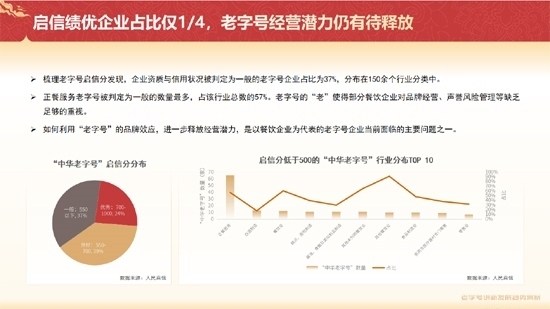 《報(bào)告》提出,從企業(yè)側(cè)來看,企業(yè)資質(zhì)與信用狀況被判定為一般的老字號企業(yè)占比37%,分布在150余個(gè)行業(yè)分類中。老字號的“老”使得部分餐飲企業(yè)對品牌經(jīng)營、聲譽(yù)風(fēng)險(xiǎn)管理等缺乏足夠的重視。
