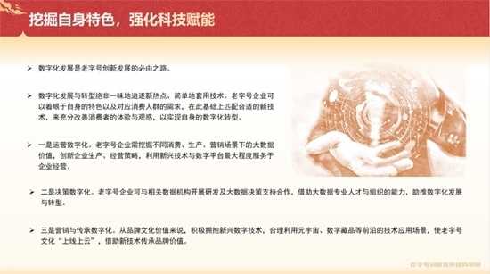 在數(shù)字化方面,《報(bào)告》提到,數(shù)字化發(fā)展與轉(zhuǎn)型絕非一味地追逐新熱點(diǎn)、簡單地套用技術(shù)。老字號企業(yè)可以著眼于自身的特色以及對應(yīng)消費(fèi)人群的需求,在此基礎(chǔ)上匹配合適的新技術(shù),來充分改善消費(fèi)者的體驗(yàn)與觀感,以實(shí)現(xiàn)自身的數(shù)字化轉(zhuǎn)型。