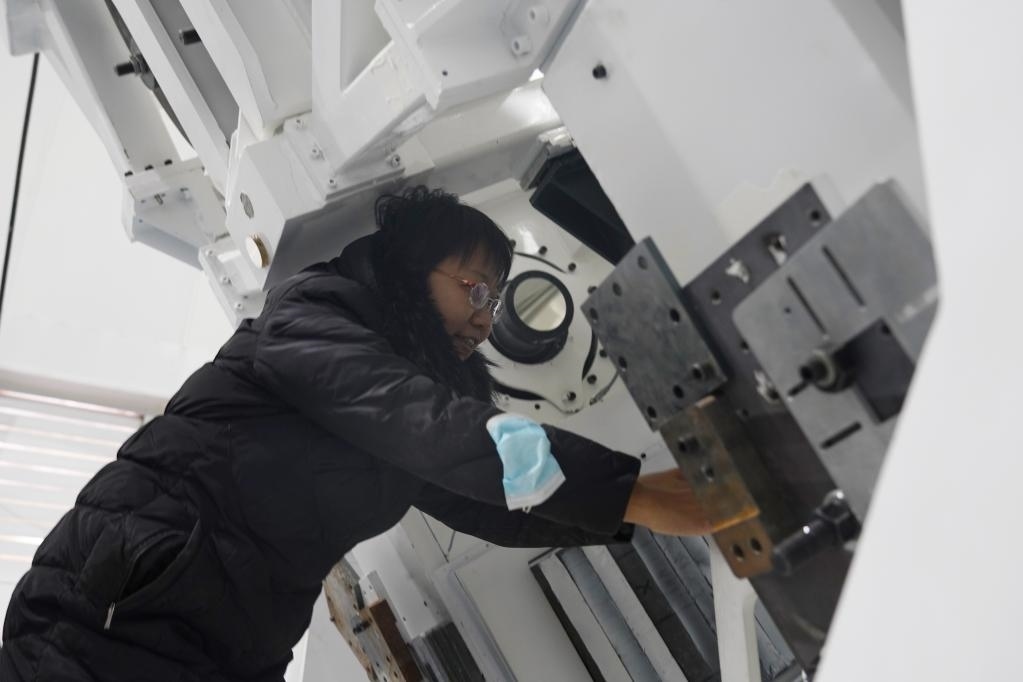 4月8日,中國科學(xué)院國家天文臺懷柔太陽觀測基地總工程師王東光在AIMS圓頂內(nèi)工作。(新華社記者陳杰 攝)