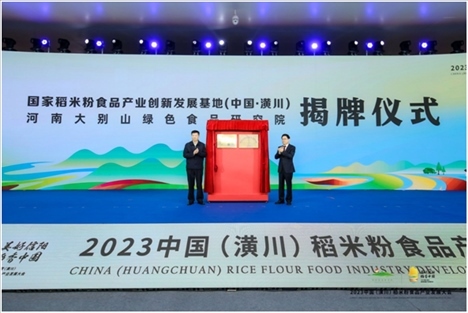 “國(guó)家稻米粉食品產(chǎn)業(yè)創(chuàng)新發(fā)展基地(中國(guó)·潢川)”“河南大別山綠色食品研究院”揭牌(主辦方供圖)