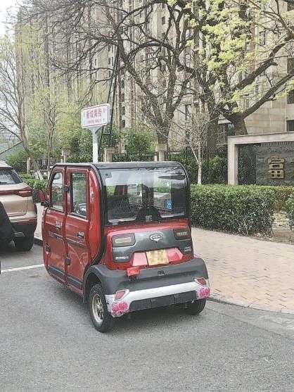 4月11日下午,記者途經(jīng)通州區(qū)萬達廣場周邊路段,正趕上孩子放學(xué)的高峰期,路上各式各樣的電動三四輪車不斷從眼前駛過,不少車輛的外形和機動車極其相似,車窗上都貼著“自用”“接送孩子”等字條。透過車窗,不難發(fā)現(xiàn)車輛的駕駛員以老年人為主。記者還發(fā)現(xiàn),這些車輛懸掛號牌的位置,已經(jīng)從過去的廠家廣告牌或是吉祥數(shù)字,變成了如今的摩托車“京B”號牌。