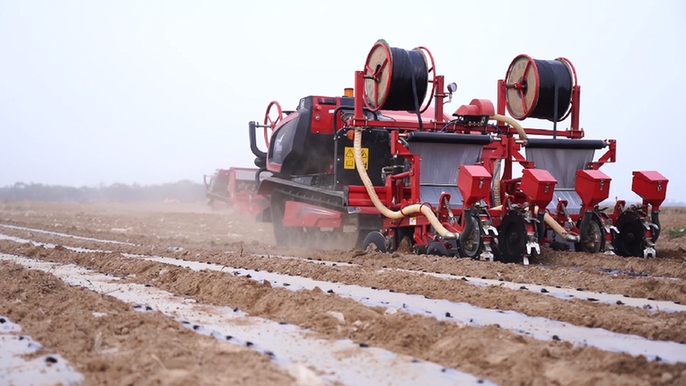 中國一拖集團有限公司技術(shù)人員李紹武介紹:“辣椒無人駕駛精量直播機連接了北斗衛(wèi)星導(dǎo)航系統(tǒng),只需要在手機上標注出播種邊界,機器就會自動規(guī)劃路線進行播種,全程只需一個人操作,一臺機器一天就能播種50畝地,每千米誤差不超過2厘米,大大提高了辣椒播種的精準度和效率。”