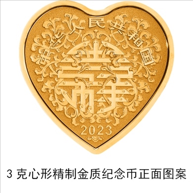 3克心形金質紀念幣為精制幣,含純金3克,外接正方形邊長18毫米,面額50元,成色99.9%,最大發(fā)行量20000枚。