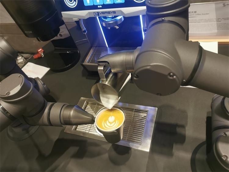 磨粉、過(guò)濾、注水、沖泡、拉花……短短75秒,智能咖啡大師就憑借著兩只靈活又穩(wěn)重的機(jī)械臂,制作出一杯帶拉花圖案的香濃咖啡?!拔覀兊臋C(jī)械臂拉花都是由咖啡大師調(diào)教的,很精準(zhǔn),如果說(shuō)有時(shí)候人可能存在失誤的情況,那么機(jī)器人不會(huì)?!卞鄄┥綎|智能機(jī)器人有限公司調(diào)試工程師崔玉坤告訴記者,這臺(tái)機(jī)器目前可以做出4個(gè)品類(lèi)6個(gè)花型的拉花效果,后期可以支持在線升級(jí)和擴(kuò)充。