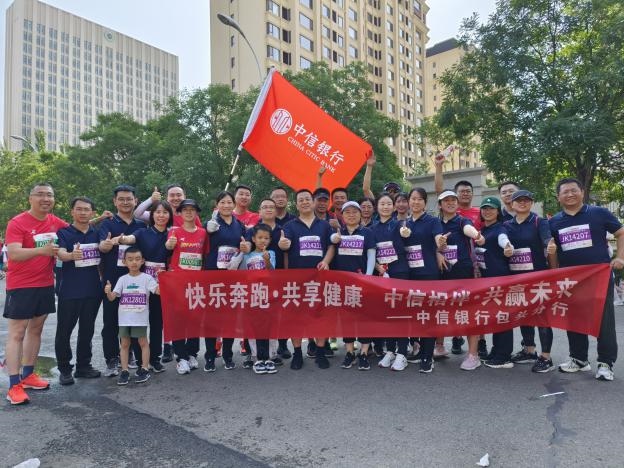 賽場上,在由包頭市當?shù)馗鞔笃髽I(yè)組織的健康跑跑團中,中信銀行包頭分行組織33名職工和馬拉松愛好者踴躍參賽,著裝整齊,精神飽滿,以實際行動踐行“快樂奔跑共享健康中信相伴共贏未來”,展現(xiàn)了中信銀行人奮力拼搏、奮勇向前的精神風(fēng)貌,成為本屆馬拉松賽事上一道亮麗的金融風(fēng)景線。