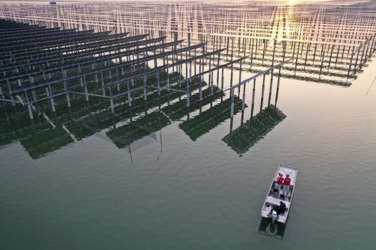 江蘇宿遷天崗湖,國網宿遷供電公司員工走進光伏基地檢查發(fā)電上網設備(2月15日攝)。新華社發(fā)(王松竹攝)