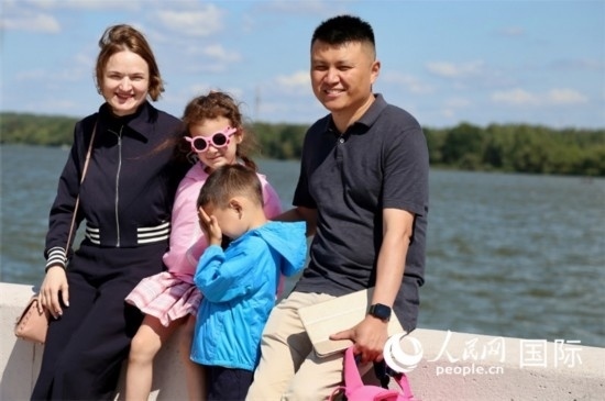 邢亮與妻子娜斯佳還有孩子們?cè)诤吷⒉?。人民網(wǎng)記者 朱虹攝