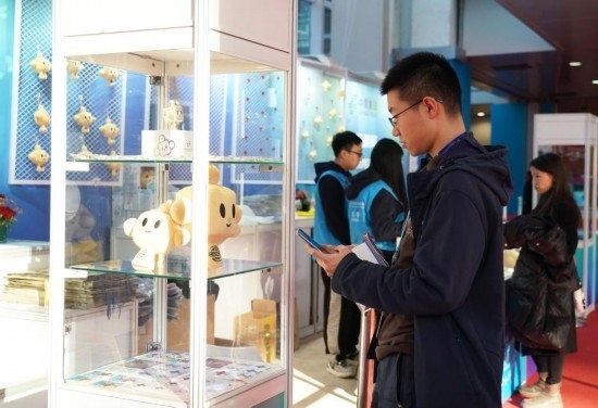11月29日,一名在鏈博會(huì)文創(chuàng)小店服務(wù)的志愿者向記者展示帶有“鏈氪”形象的鏈博會(huì)專屬紀(jì)念郵折。