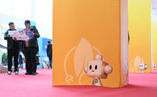 11月29日,鏈博會(huì)展廳入口處擺放著帶有“鏈氪”形象的小花壇引導(dǎo)觀展人群。