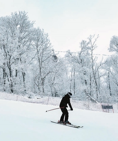 吉林省吉林市萬科松花湖度假區(qū),游客在體驗(yàn)滑雪樂趣。新華社記者 許 暢攝