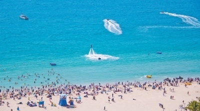 海南三亞,大東海海濱景區(qū)游人如織。葉龍斌攝(影像中國)