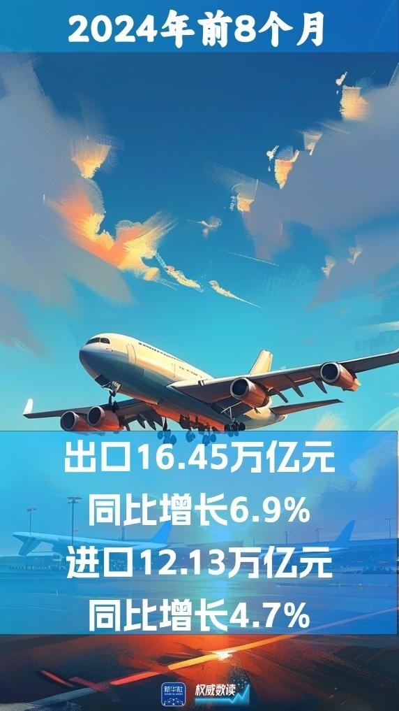 海關(guān)總署10日發(fā)布數(shù)據(jù):2024年前8個(gè)月,我國貨物貿(mào)易進(jìn)出口總值28.58萬億元人民幣,同比增長6%。其中,出口16.45萬億元,同比增長6.9%;進(jìn)口12.13萬億元,同比增長4.7%。