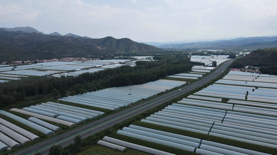 空中俯瞰王爺府鎮(zhèn)番茄種植大棚