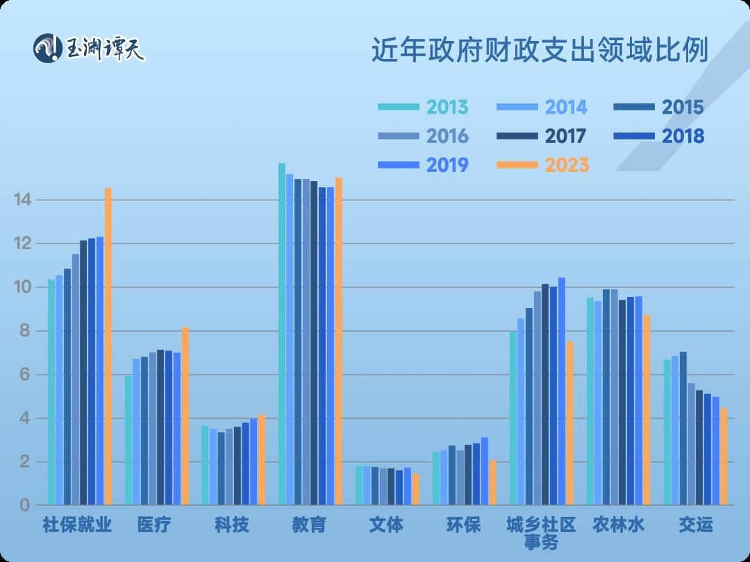 統(tǒng)計數(shù)據(jù)顯示,近年來,我們的財政支出結(jié)構(gòu)已經(jīng)變得更加有針對性,定向投資綠色經(jīng)濟(jì)、民生領(lǐng)域、高技術(shù)等有利于民的行業(yè)。在去年的財政支出結(jié)構(gòu)中,社保就業(yè)、教育這類民生領(lǐng)域一直占據(jù)大頭。其中,社保就業(yè)、醫(yī)療的財政投入漲幅遠(yuǎn)超其他類目。