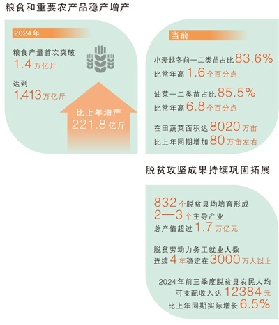 2024年,我國糧食和重要農產品實現穩(wěn)產增產。