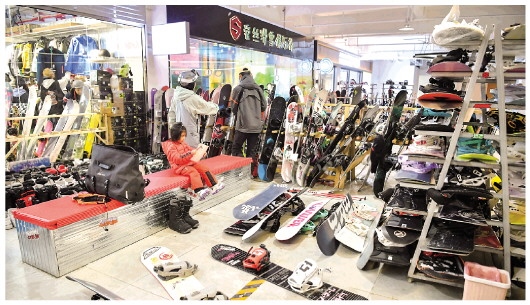 2月14日,在陜西太白縣鰲山滑雪場內(nèi),俱樂部會(huì)員在挑選滑雪裝備。新華社記者 邵瑞 攝