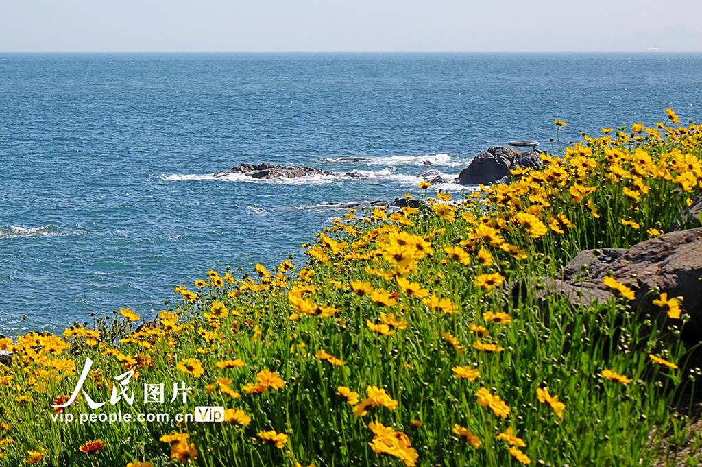 近日,青島海岸邊的金雞菊盛放成片片黃色花海,與蔚藍(lán)的大海相映生輝,美不勝收。韓波攝(人民圖片網(wǎng))