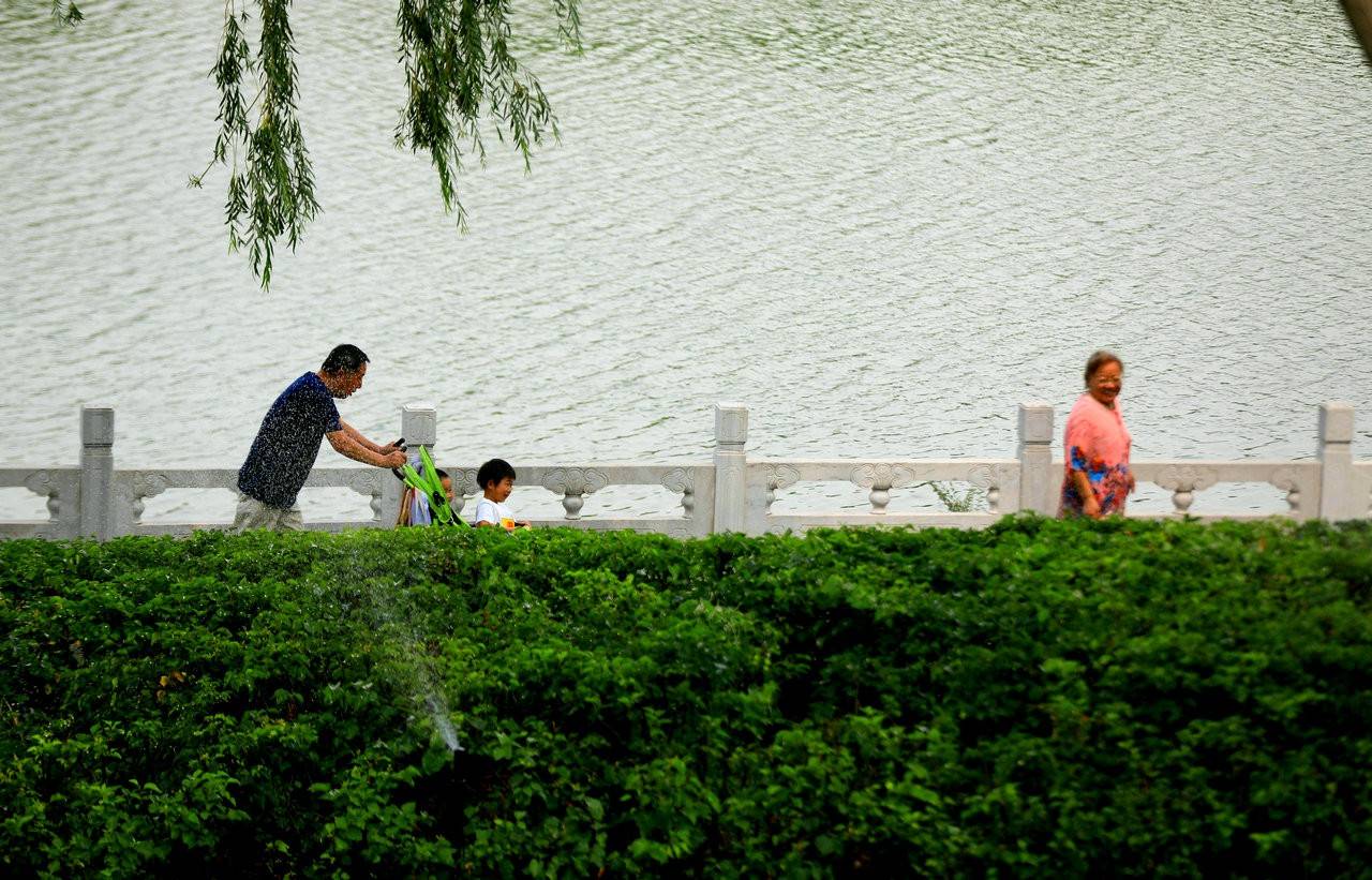 8月4日,市民在呼和浩特萬通路“青城綠道”穿行。