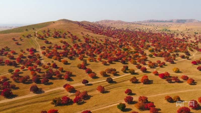 央廣網(wǎng)興安10月18日消息(記者 王秋蕾) 十月的內(nèi)蒙古興安盟科右中旗天高云淡,寒露過(guò)后,隨著氣溫下降,6萬(wàn)余公頃五角楓林換上盛裝,給了生命最炫目的顏色,漫山遍野,層林盡染,如詩(shī)如畫(huà)。