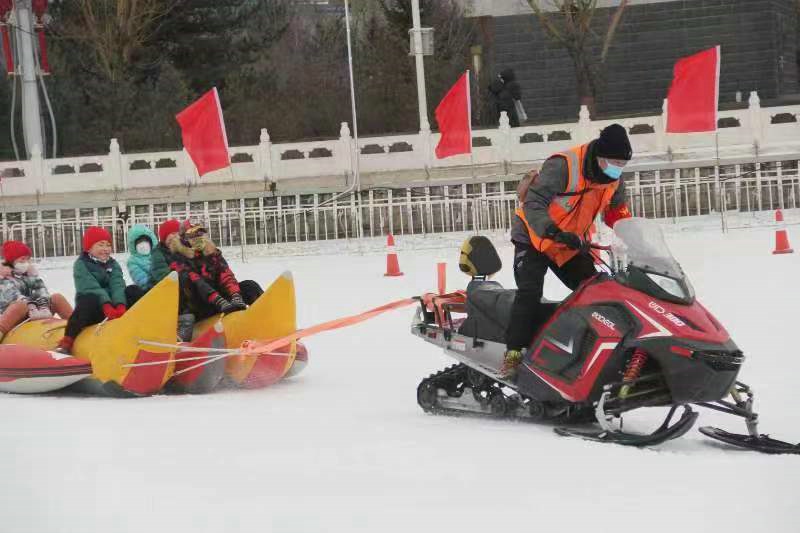 本屆冰雪季活動(dòng)冰雪場(chǎng)地面積達(dá)19萬(wàn)平方米,共有17類冰雪游玩項(xiàng)目,一次性可接待人流量約8000人。