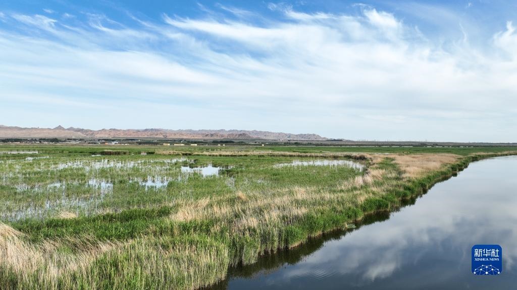這是6月4日拍攝的位于內(nèi)蒙古巴彥淖爾市烏拉特前旗的烏梁素海(無(wú)人機(jī)全景照片)。