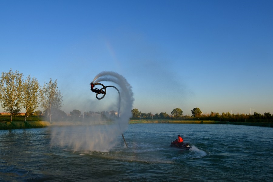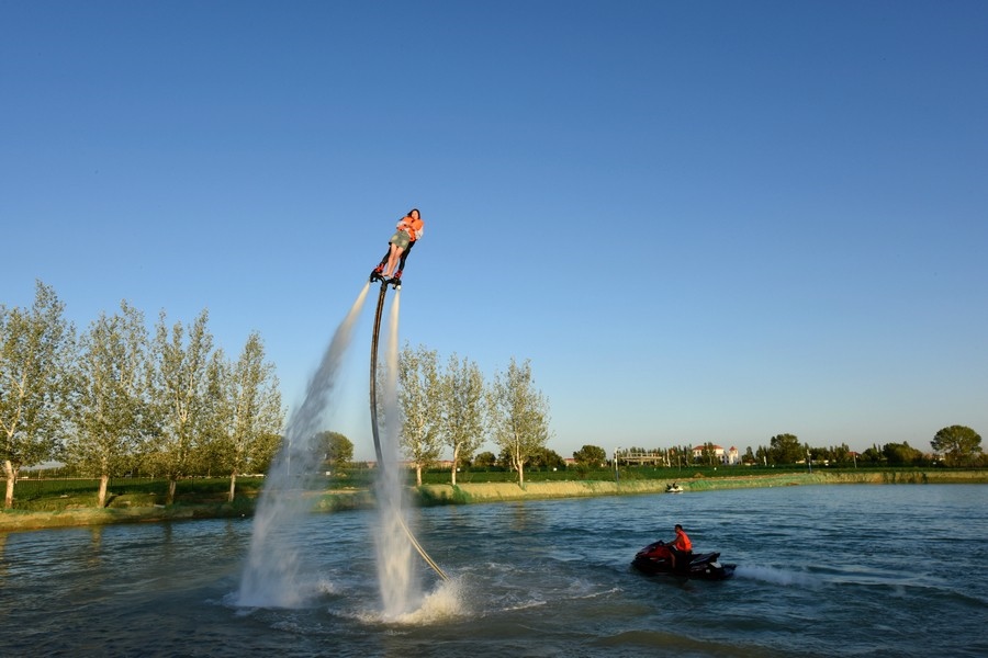 游客在體驗(yàn)水上飛人 記者 張楊攝影