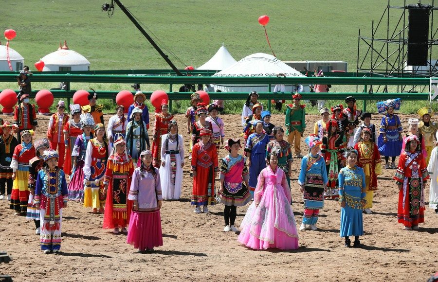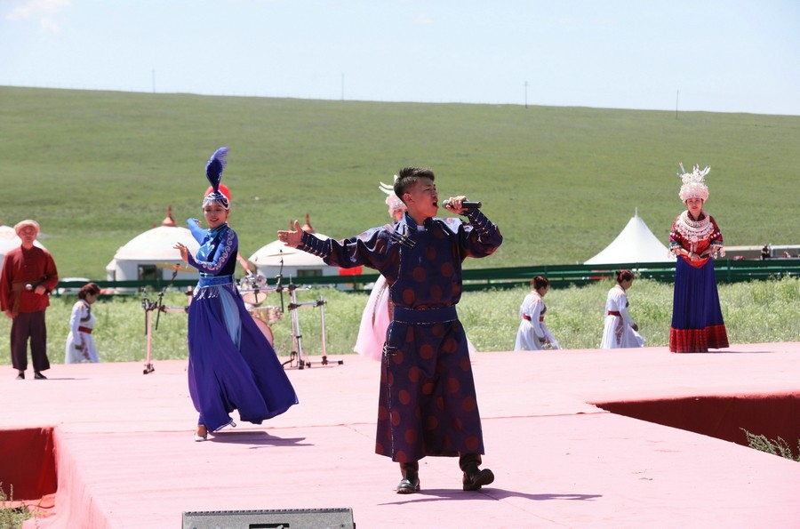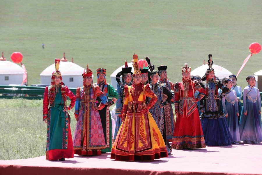 伴著悠揚的歌聲,踏著激昂的步伐,在旗幟方隊的引領(lǐng)下,哈達方隊、民族方隊、烏蘭牧騎方隊、牧馬人方隊、裁判員及運動員方隊依次走進會場。隨著彩煙燃放,氣球升空,那達慕在梅林組合的歌曲《歡騰那達慕》中拉開帷幕。隨后,歌伴舞《石榴花開》等節(jié)目輪番登場,現(xiàn)場觀眾掌聲雷動,讓來自全國各地的游客在紅石崖高山牧場領(lǐng)略了草原的柔情。